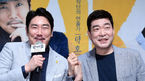 [OSEN=민경훈 기자] 22일 오전 서울 강남구 신사동 CGV 압구정에서 영화 ‘광대들: 풍문조작단’ 제작보고회가 열렸다.제작보고회에서 손현주와 박희순이 환하게 웃고 있다./ rumi@osen.co.kr
