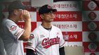 [OSEN=수원, 이대선 기자] 27일 오후 경기도 수원 KT위즈파크에서 ‘2019 신한은행 MY CAR KBO리그’ kt wiz와 LG 트윈스의 경기가 열릴 예정이다.경기에 앞서 LG 이천웅이 취재진과 이야기를 나누고 있다. /sunday@osen.co.kr
