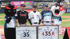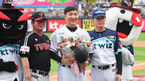[OSEN=수원, 박준형 기자] 28일 오후 경기도 수원 KT위즈파크에서 ‘2019 신한은행 MY CAR KBO리그’ kt wiz와 LG 트윈스의 경기가 열렸다.경기 앞서 이진영이 은퇴식을 갖고 LG 주장 김현수 kt 주장 유한준과 포즈를 취하고 있다. /so