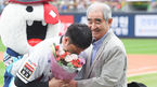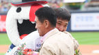 [OSEN=수원, 박준형 기자] 28일 오후 경기도 수원 KT위즈파크에서 ‘2019 신한은행 MY CAR KBO리그’ kt wiz와 LG 트윈스의 경기가 열렸다.경기 앞서 이진영이 은퇴식을 갖고 조범현 전 감독의 축하를 받고있다. /soul1014@osen.co.kr