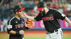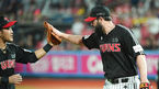 [OSEN=수원, 박준형 기자] 28일 오후 경기도 수원 KT위즈파크에서 ‘2019 신한은행 MY CAR KBO리그’ kt wiz와 LG 트윈스의 경기가 열렸다.6회말 이닝종료 후 LG 선발투수 켈리가 호수비 펼친 정주현 2루수와 하이파이브를 하고 있다