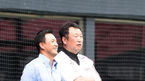 [OSEN=잠실, 곽영래 기자] 30일 오후 서울 잠실야구장에서 열리는 ‘2019 신한은행 MY CAR KBO리그' LG 트윈스와 키움 히어로즈의 경기에 앞서 양팀 훈련시간이 진행됐다.LG 차명석 단장과 김재현 해설위원이 이야기를 나누고 있다. /