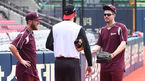 [OSEN=잠실, 박준형 기자] 31일 오후 서울 잠실야구장에서 '2019 신한은행 MY CAR KBO리그' LG 트윈스와 키움 히어로즈의 경기가 열린다.경기에 앞서 키움 브리검과 요키시, LG 켈리가 이야기를 나누고 있다. / soul1014@osen.co.kr