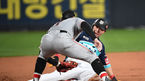 [OSEN=수원, 곽영래 기자] 1일 오후 수원 KT위즈파크에서 '2019 신한은행 MY CAR KBO리그' KT위즈와 한화 이글스 경기가 열렸다.7회말 1사 1,2루 KT 김진곤의 안타를 때린 뒤 2루까지 진루하려다 아웃당하고 있다. / youngrae@osen.co.kr