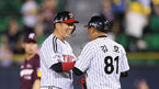 [OSEN=잠실, 박준형 기자] 1일 오후 서울 잠실야구장에서 '2019 신한은행 MY CAR KBO리그' LG 트윈스와 키움 히어로즈의 경기가 열렸다.7회말 2사 2루 LG 이성우가 1타점 적시 2루타를 날린뒤 미소 지으며 김호 코치와 이야기를 나누고 있