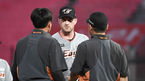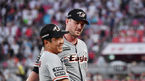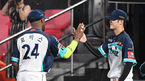 [OSEN=수원, 곽영래 기자] 1일 오후 수원 KT위즈파크에서 '2019 신한은행 MY CAR KBO리그' KT위즈와 한화 이글스 경기가 열렸다.4회말 이닝을 마친 한화 채드벨이 정근우와 장난을 치고 있다. / youngrae@osen.co.kr