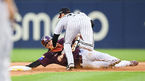 [OSEN=잠실, 박준형 기자] 1일 오후 서울 잠실야구장에서 '2019 신한은행 MY CAR KBO리그' LG 트윈스와 키움 히어로즈의 경기가 열렸다.3회초 무사 1루 키움 김혜성의 타석때 1루 주자 이지영이 LG 오지환 유격수에게 태그아웃되고 있다.