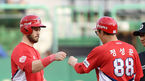 [OSEN=인천, 최규한 기자] 1일 오후 인천SK행복드림구장에서 ‘2019 신한은행 MY CAR KBO리그’ SK 와이번스와 KIA 타이거즈의 경기가 열렸다.1회초 2사 주자없는 상황 KIA 터커가 2루타를 날리고 정성훈 코치와 인사를 나누고 있다.