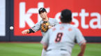 [OSEN=수원, 곽영래 기자] 1일 오후 수원 KT위즈파크에서 '2019 신한은행 MY CAR KBO리그' KT위즈와 한화 이글스 경기가 열렸다.1회말 무사 한화 정은원이 KT 심우준의 땅볼을 잡아 1루로 송구하고 있다. / youngrae@osen.co.kr