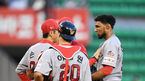 [OSEN=잠실, 이대선 기자] 10일 오후 서울 잠실야구장에서 ‘2019 신한은행 마이카 KBO리그’ LG 트윈스와 SK 와이번스의 경기가 열렸다.4회초 2사 1,2루에서 마운드를 방문한 SK 손혁 코치가 산체스와 이야기를 나누고 있다. /sunda