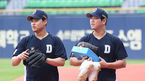 [OSEN=잠실,박준형 기자] 17일 오후 서울 잠실구장에서 '2019 신한은행 MY CAR KBO리그' 두산 베어스와 롯데 자이언츠의 경기가 진행됐다.경기에 앞서 이형범과 함덕주가 훈련을 마친뒤 라커룸으로 이동하고 있다. / soul1014@osen.co.kr
