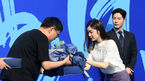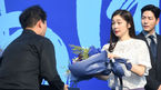 [OSEN=곽영래 기자] 20일 오전 서울 송파구 방이동 올림픽공원에서 'SKT 갤럭시노트10 론칭 행사'가 진행됐다.김연아가 수상자에게 선물과 꽃다발을 건네고 있다./youngrae@osen.co.kr