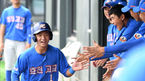 [OSEN=목동, 이대선 기자] 21일 오전 서울 양천구 목동야구장에서 봉황대기 전국고교야구대회 효천고와 성남고의 경기가 열렸다.6회말 성남고의 폭투 때 홈을 밟은 효천고 3루주자 최명경이 더그아웃에서 동료들과 환호하고 있다