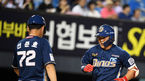 [OSEN=잠실, 지형준 기자] 23일 오후 서울 잠실야구장에서 ’2019 신한은행 MY CAR KBO 리그’ LG 트윈스와 NC 다이노스의 경기가 열렸다.3회말 2사에서 LG 채은성이 솔로포를 날리고 류중일 감독과 기뻐하고 있다. /jpnews@osen.co.kr