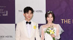 [OSEN=이대선 기자] 24일 오후 서울 잠원동 더리버사이드호텔에서 유키스 기섭과 신인 배우 겸 뷰티 모델 정유나가 결혼식을 올린다.이날 결혼식에 앞서 기자회견에 참석한 신랑 기섭과 신부 정유나가 포토타임을 갖고 있다. /sund
