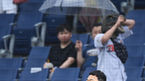 [OSEN=창원,박준형 기자] 28일 오후 경남 창원시 마산회원구 창원NC파크에서 '2019신한은행 MYCAR KBO리그' NC 다이노스와 kt 위즈의 경기가 진행된다.경기에 앞서 내리는 비에 경기시작이 지연되고 있다. 경기시작은 6시 30분에서 6시 50