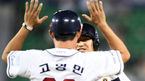 [OSEN=잠실, 지형준 기자] 31일 오후 서울 잠실야구장에서 ’2019 신한은행 MY CAR KBO 리그’ 두산 베어스와 삼성 라이온즈의 경기가 열렸다.8회말 2사 2,3루에서 두산 김재호가 역전 2타점 적시타를 날리고 고영민 코치와 기뻐하