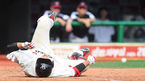 [OSEN=인천,박준형 기자] 1일 오후 인천 SK행복드림구장에서 '2019 신한은행 MY CAR KBO리그' SK 와이번스와 LG 트윈스의 경기가 진행됐다.5회말 2사 1루 SK 고종욱이 파울타구를 맞은뒤 쓰러져 있다. / soul1014@osen.co.kr