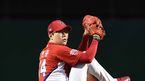 [OSEN=대전, 이대선 기자] 3일 오후 대전 한화생명이글스파크에서 ‘2019 신한은행 마이카 KBO리그’ 한화 이글스와 KIA 타이거즈의 경기가 열렸다.1회초 1사에서 마운드를 방문한 한화 정민태 코치가 김이환과 이야기를 나누