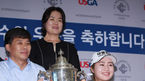 [OSEN=민경훈 기자] 4일 오전 서울 중구 롯데호텔 서울 가넷 스위트에서 US여자오픈 챔피언 이정은6의 기자간담회가 진행됐다.이정은이 무대 앞에서 US오픈 우승트로피를 들고 부모님과 함께 포토타임을 갖고 있다. /rumi@osen.co.kr