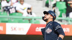 [OSEN=인천, 곽영래 기자] 19일 오후 인천 SK 행복드림구장에서 '2019 신한은행 마이카 KBO리그' SK 와이번스와 두산 베어스의 더블헤더 1차전이 열렸다.3회초 2사 두산 페르난데스가 사구를 맞은 뒤 통증을 호소하고 있다. /youngrae@osen.c