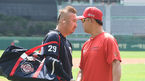 [OSEN=인천, 곽영래 기자] 19일 오후 인천 SK 행복드림구장에서 열리는 ’2019 신한은행 마이카 KBO리그' SK 와이번스와 두산 베어스의 더블헤더 1차전에 앞서 양팀 훈련 시간이 진행됐다.두산 유희관과 SK 손지환 코치가 인사를 나