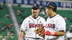 [OSEN=잠실, 곽영래 기자] 20일 오후 서울 잠실 야구장에서 '2019 신한은행 MY CAR KBO리그' 두산 베어스와 KIA 타이거즈의 경기가 열렸다.7회초 이닝을 마친 두산 유희관이 호수비를 선보인 최주환과 글러브 터치를 하고 있다. / youngrae@o