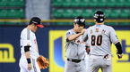 [OSEN=잠실, 지형준 기자] 23일 오후 서울 잠실야구장에서 '2019신한은행 MYCAR KBO리그' 한화 이글스와 LG 트윈스의 경기가 열렸다.1회초 1사 1,3루에서 한화 정근우가 1타점 좌전 적시 2루타를 날리고 고동진 코치와 주먹을 맞대고 있