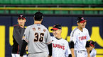 [OSEN=잠실, 지형준 기자] 23일 오후 서울 잠실야구장에서 '2019신한은행 MYCAR KBO리그' 한화 이글스와 LG 트윈스의 경기가 열렸다.클리닝 타임에 LG 송은범과 한화 장민재가 외야에서 몸을 풀며 이야기를 나누고 있다./jpnews@osen.co.kr