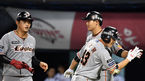 [OSEN=잠실, 지형준 기자] 23일 오후 서울 잠실야구장에서 '2019신한은행 MYCAR KBO리그' 한화 이글스와 LG 트윈스의 경기가 열렸다.7회초 2사 1루에서 한화 정은원이 투런포를 날리고 강경학과 기뻐하고 있다./jpnews@osen.co.kr