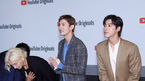 [OSEN=민경훈 기자] 27일 오전 서울 강남구 SMTOWN코엑스아티움에서 열린 유튜브 오리지널 '아날로그 트립(Analog Trip)' 제작발표회가 진행됐다.동방신기 유노윤호와 최강창민, 슈퍼주니어 이특이 입장하며 인사를 하고 있다. / rumi@osen