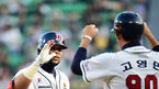 [OSEN=잠실, 지형준 기자] 28일 오후 서울 잠실야구장에서 ’2019 신한은행 MY CAR KBO 리그’ 두산 베어스와 한화 이글스의 경기가 열렸다.2회말 2사 2,3루에서 두산 페르난데스가 2타점 적시타를 날리고 고영민 코치와 기뻐하고