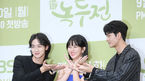 [OSEN=민경훈 기자] 30일 오후 서울 구로구 라마다 서울 신도림 호텔 서울 그랜드볼룸에서 새 월화드라마 '조선로코-녹두전' 제작발표회가 열렸다.배우 장동윤, 김소현, 강태오가 무대 앞으로 입장하며 포즈를 취하고 있다. /rumi@os