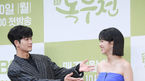 [OSEN=민경훈 기자] 30일 오후 서울 구로구 라마다 서울 신도림 호텔 서울 그랜드볼룸에서 새 월화드라마 '조선로코-녹두전' 제작발표회가 열렸다.배우 장동윤, 김소현이 무대 앞으로 입장하며 포즈를 취하고 있다. /rumi@osen.co.kr