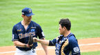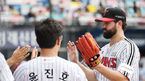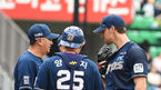 [OSEN=잠실, 곽영래 기자] 3일 오후 서울 잠실야구장에서 '2019 신한은행 MY CAR KBO 포스트시즌' LG 트윈스와 NC 다이노스의 와일드카드 결정전 1차전이 열렸다.3회말 2사 1,2루 NC 손민한 코치가 마운드에 올라 프리드릭과 이야기를 나누