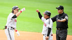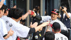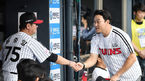 [OSEN=잠실, 곽영래 기자] 3일 오후 서울 잠실야구장에서 '2019 신한은행 MY CAR KBO 포스트시즌' LG 트윈스와 NC 다이노스의 와일드카드 결정전 1차전이 열렸다.봉중근 해설위원이 시구를 마친 뒤 LG 류중일 감독과 인사를 나누고 있다.