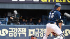 [OSEN=잠실, 지형준 기자] 3일 오후 서울 잠실야구장에서 '2019 신한은행 MY CAR KBO 포스트시즌' LG 트윈스와 NC 다이노스의 와일드카드 결정전 1차전이 열렸다.1회말 무사에서 NC 프리드릭이 LG 이천웅의 중전안타 타구에 놀라고 있다. /