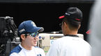[OSEN=잠실, 곽영래 기자] 3일 오후 서울 잠실야구장에서 '2019 신한은행 MY CAR KBO 포스트시즌' LG 트윈스와 NC 다이노스의 와일드카드 결정전 1차전이 열렸다.경기에 앞서 NC 이동욱 감독이 스몰린스키와 이야기를 나누고 있다. /youngr