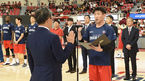 [OSEN=울산, 최규한 기자] 5일 오후 울산 동천체육관에서 ‘2019-2020 현대모비스 프로농구’ 개막전 울산 현대모비스와 인천 전자랜드의 경기가 열린다.경기 시작을 앞두고 현대모비스 양동근이 선수단을 대표해 이정대 KBL