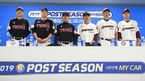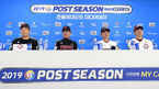 [OSEN=고척돔, 곽영래 기자] 5일 오후 서울 고척스카이돔에서 '2019 신한은행 MY CAR KBO 포스트시즌' 키움 히어로즈와 LG 트윈스의 준플레이오프 미디어데이가 진행됐다.LG 차우찬, 김현수, 류중일 감독, 키움 장정석 감독, 오주원, 이