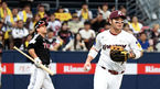 [OSEN=고척돔, 지형준 기자] 7일 오후 서울 고척스카이돔에서 '2019 신한은행 MY CAR KBO 포스트시즌' 준플레이오프 2차전 키움 히어로즈와 LG 트윈스의 경기가 열렸다.4회초 무사 1루에서 키움 박병호가 LG 김민성의 보내기 번트 타구를