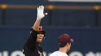 [OSEN=고척돔, 손용호기자] 7일 오후 서울 고척스카이돔에서 '2019 신한은행 MY CAR KBO 포스트시즌' 준플레이오프 2차전 키움 히어로즈와 LG 트윈스의 경기가 열렸다.1회초 1사 김민성이 2루타를 치고 좋아하고있다. /spjj@osen.co.kr