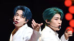 [OSEN=이대선 기자] 7일 오후 서울 동대문구 경희대학교 평화의전당에서 가수 에이비식스(AB6IX)의 첫 정규앨범 '6IXENSE(식스센스)' 발매 기념 쇼케이스가 열렸다.그룹 AB6IX 김동현과 박우진이 신곡을 선보이고 있다. /sunday@osen.co.kr