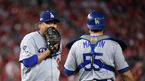 [OSEN=워싱턴 D.C.(미국), 박준형 기자] 7일(한국시간) 미국 워싱턴 D.C. 내셔널스 파크에서 2019 MLB 포스트시즌 내셔널리그 디비전시리즈(NLDS) 워싱턴 내셔널스와 LA의 다저스의 3차전이 진행됐다.5회초 LA 류현진이 마틴과 더그아웃에