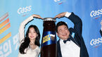 [OSEN=이대선 기자] 8일 오전 서울 강남구 메가박스 코엑스에서 카스 신규 광고 ‘캬~, 갓 만든 생맥주의 맛’ 최초 공개 기자간담회가 열렸다.걸그룹 에이핑크 손나은과 개그맨 김준현이 포토타임을 갖고 있다. /sunday@osen.co