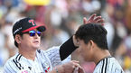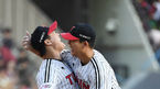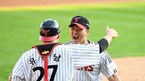 [OSEN=잠실, 곽영래 기자] 2패로 탈락 위기에 놓인 LG가 반격에 성공했다.LG는 9일 잠실구장에서 열린 키움과의 준플레이오프 4차전서 4-2 역전승을 장식했다.승리를 거둔 LG 류중일 감독이 세이브를 거둔 고우석과 주먹을 맞대고 있