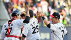 [OSEN=잠실, 곽영래 기자] 2패로 탈락 위기에 놓인 LG가 반격에 성공했다.LG는 9일 잠실구장에서 열린 키움과의 준플레이오프 4차전서 4-2 역전승을 장식했다.승리를 거둔 LG 선수들이 기뻐하고 있다. /youngrae@osen.co.kr