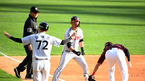 [OSEN=잠실, 곽영래 기자] 9일 오후 서울 잠실야구장에서 '2019 신한은행 MY CAR KBO 포스트시즌' 준플레이오프 3차전 LG 트윈스와 키움 히어로즈의 경기가 열렸다.7회초 무사 LG 송은범이 안타를 허용한 뒤 강판되고 있다. /youngrae@osen.co.