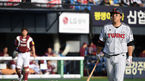 [OSEN=잠실, 지형준 기자] 9일 오후 서울 잠실야구장에서 '2019 신한은행 MY CAR KBO 포스트시즌' 준플레이오프 3차전 키움 히어로즈와 LG 트윈스의 경기가 열렸다.7회초 등판한 LG 송은범이 키움 이지영에 안타를 허용하며 교체되고 있