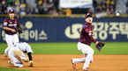 [OSEN=잠실, 손용호 기자] 10일 오후 서울 잠실야구장에서 '2019 신한은행 MY CAR KBO 포스트시즌' 준플레이오프 4차전 LG 트윈스와 키움 히어로즈의 경기가 열렸다.6회말 무사 1루 오지환의 내야땅볼을 수비하던 김혜성이 이천웅과 충